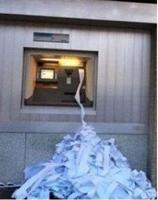 최근 한 온라인 커뮤니티 게시판에는 '토하고 있는 현금 인출기'사진이 게재됐다. 공개된 사진에는 현금 인출기에서 명세표 용지가 끊이지 않고 나와 수북하게 쌓여있는 모습이 담겨있다.