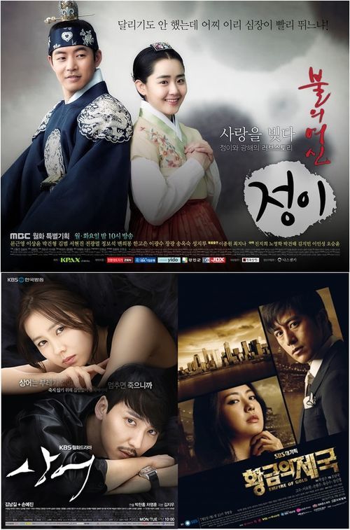 지난 1일 MBC ‘불의 여신 정이’와 SBS ‘황금의 제국’이 동시간대 첫 방송을 하면서 월화드라마가 새 판을 짰다. 손예진과 김남길의 열연과 숨이 막힐 듯한 휘몰아치는 전개로 이미 고정 시청자들을 확보한 KBS 2TV ‘상어’가 버티고 있는 상황에서 흥미로운 성공 이야기와 절절한 로맨스를 내세운 ‘불의 여신 정이’, 자본사회라는 처절한 구조 속에 내던져진 이들의 성공과 몰락의 갈림길을 그린 ‘황금의 제국’이 예감 좋은 첫 발을 내디뎠다.