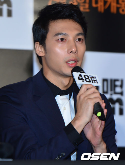 배우 하석이 2일 서울 행당동 CGV왕십리에서 열린 영화 '48미터'(감독 민백두) 언론시사회에 참석해 인사말을 하고 있다.