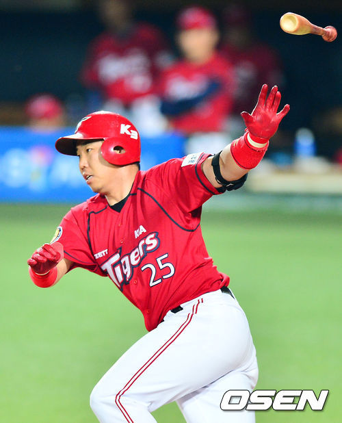 이범호(32, KIA)가 빗줄기를 뚫는 시원한 2점 홈런을 터뜨렸다.