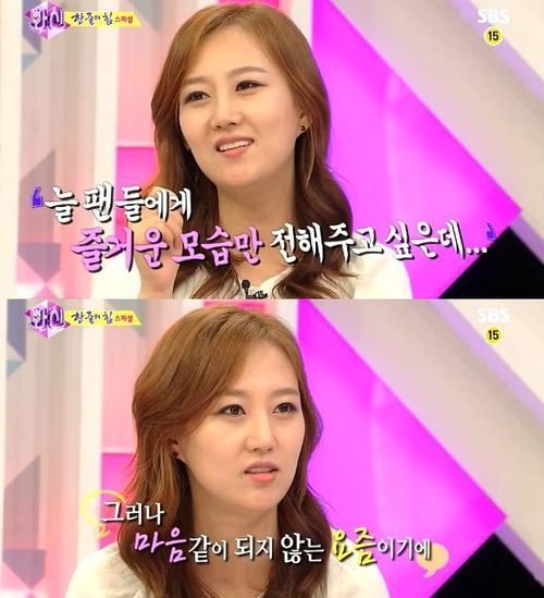 장윤정은 2일 오후 방송된 SBS 예능프로그램 ‘화신, 마음을 지배하는 자’(이하 ‘화신’)에서 "늘 팬들에게 즐거운 모습만 전해주고 싶다"면서 "저를 보면 '어머나'가 생각나고 '짠짜라'가 생각나야 한다. 안 좋은 일이 생각나면 안되지 않나"고 말했다.