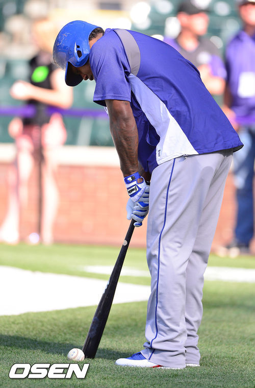 [OSEN=덴버(미국), 곽영래 기자] 3일(한국시간) 미국 콜로라도주 덴버 쿠어스필드에서 열린 2013 미국 메이저리그 콜로라도 로키스와 LA 다저스의 경기에 앞서 다저스 라미레스가 야구공으로 골프를 치고 있다.