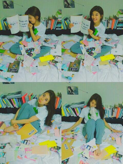 그룹 미쓰에이의 수지가 팬레터들을 확인하며 인증샷을 찍어 올렸다.