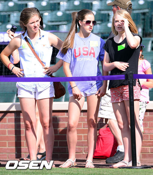 [OSEN=덴버(미국), 곽영래 기자] 3일(한국시간) 미국 콜로라도주 덴버 쿠어스필드에서 열린 2013 미국 메이저리그 콜로라도 로키스와 LA 다저스의 경기에 앞서 콜로라도 로키스 소녀팬들이 구장 그라운드에 나와 선수들을 기다리고 있다.