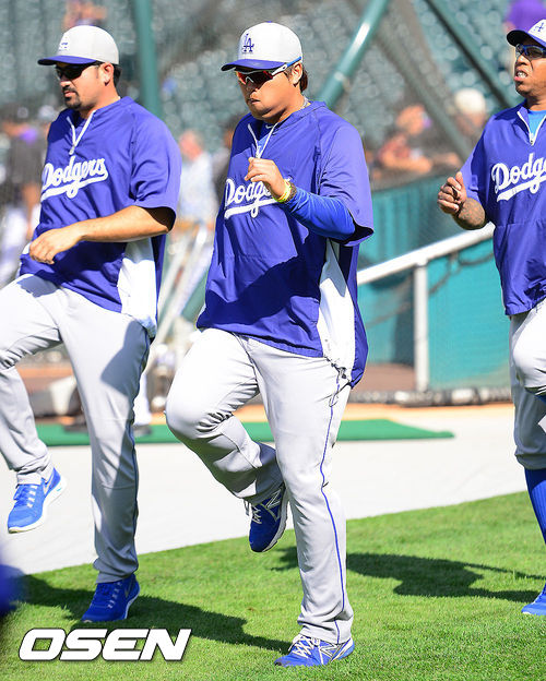 [OSEN=덴버(미국), 곽영래 기자] 3일(한국시간) 미국 콜로라도주 덴버 쿠어스필드에서 열린 2013 미국 메이저리그 콜로라도 로키스와 LA 다저스의 경기에 앞서 다저스 류현진이 몸을 풀고 있다.