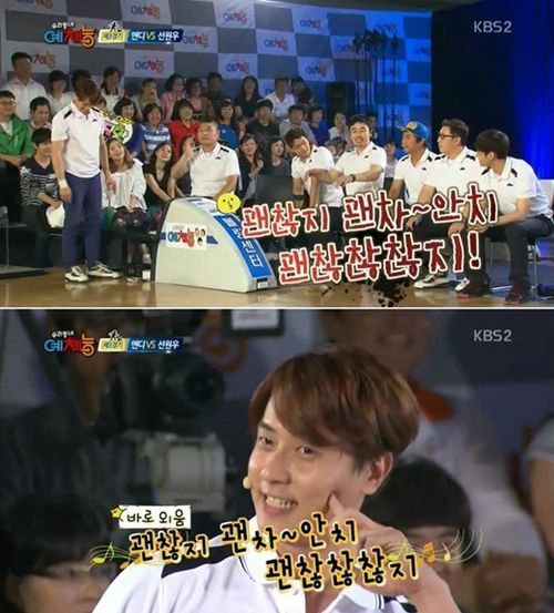 이에 강호동도 "앤디야, 지금 긴장해도 괜찮지?"라는 응용 버전의 괜찮아송을 불러줬고, 앤디는 귀요미 포즈를 취하며 긴장을 푸는 모습을 보였다. 또 관중석도 괜찮아송에 매료된 듯 함께 부르는 훈훈한 모습이 연출됐다.