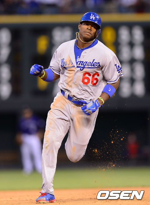 [OSEN=덴버(미국), 곽영래 기자] 3일(한국시간) 미국 콜로라도주 덴버 쿠어스필드에서 열린 2013 미국 메이저리그 콜로라도 로키스와 LA 다저스의 경기, 7회초 다저스 선두타자 푸이그가 솔로홈런을 날리고 베이스를 돌고 있다.