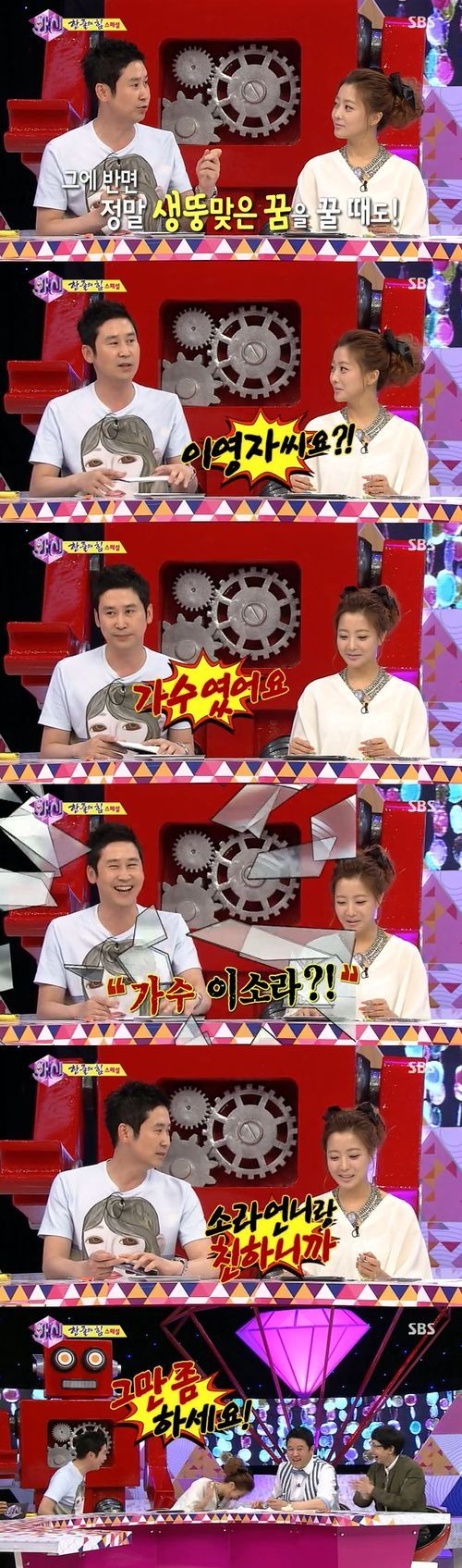 김희선은 "이영자냐"고 물었고 신동엽은 "가수였다"고 답했다. 김희선은 여기서 멈추지 않고 "가수 이소라?"라고 말해 신동엽을 당황하게 했다. 이어 "가수 이소라가 아니라 이소라랑 친하다"고 돌직구를 날렸다. 결국 신동엽은 "그만 좀 하세요"라고 버럭해 웃음을 자아냈다.