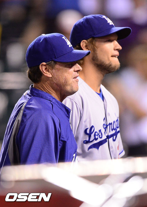 경기종료 후 커쇼가 허니컷 코치와 그라운드를 빠져나가고 있다. / soul1014@osen.co.kr