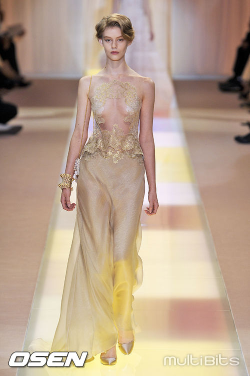 [OSEN/WENN 특약] 2일(현지시간) 프랑스 파리에서 열린 파리 패션 위크 오트쿠튀르 F/W 2014 조르지오 알마니 패션쇼에서 한 모델이 캣 워크를 하고 있다.