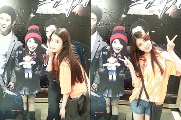 공개된 사진에는 지난 2011년 방송된 KBS 2TV 드라마 '드림하이' 출연 당시 자신의 판넬 옆에서 귀여운 포즈를 취하고 있는 아이유의 모습이 담겨있다. 특히 아이유는 2년 전 모습과 변함 없는 깜찍함을 드러내 눈길을 끈다.