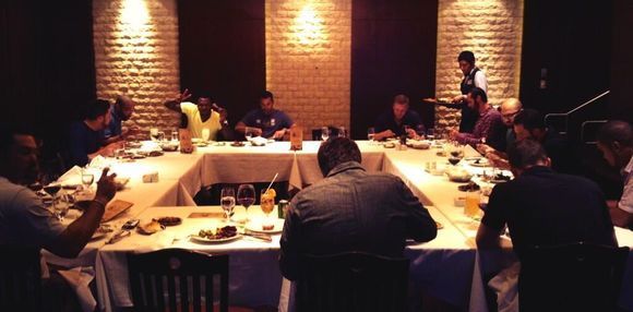 류현진은 지난 2일 자신의 트위터에 "팀원들이랑 식사. 역시 고기"라는 글과 함께 사진 한장를 게재했다.