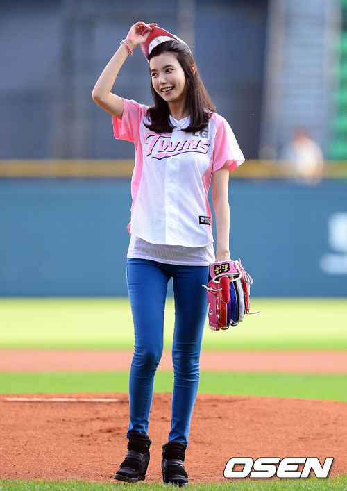 3일 오후 서울 잠실구장에서 열린 '2013 한국야쿠르트 세븐 프로야구' LG 트윈스와 한화 이글스의 경기 시작 전 오승현이 시구를 마치고 모자를 벗고 있다.