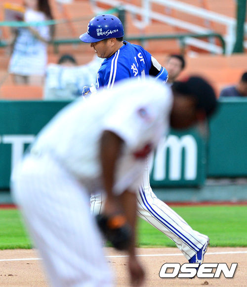 3일 오후 부산 사직구장에서 열린 롯데 자이언츠와 삼성 라이온스의 경기, 1회초 1사 1루에서 삼성 최형우가 선제 투런홈런을 날리고 그라운드를 돌고 있다.