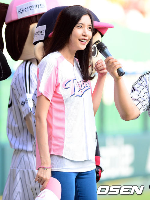 3일 오후 서울 잠실구장에서 열린 '2013 한국야쿠르트 세븐 프로야구' LG 트윈스와 한화 이글스의 경기 시작 전 시구를 맡은 오승현이 관중들에게 인사를 하고 있다.