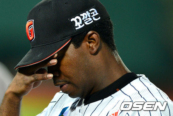 3일 오후 부산 사직구장에서 열린 롯데 자이언츠와 삼성 라이온스의 경기, 5회초 수비를 마치고 롯데 유먼이 땀을 닦으며 더그아웃으로 향하고 있다. 유먼은 5이닝 2실점.