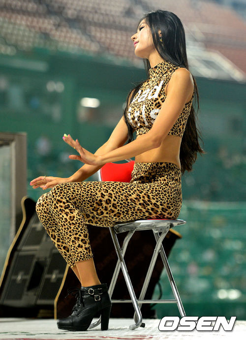 3일 오후 부산 사직구장에서 열린 롯데 자이언츠와 삼성 라이온스의 경기, 롯데 치어리더 박기량이 이효리의 '배드걸'에 맞춰 멋진 공연을 선보이고 있다.