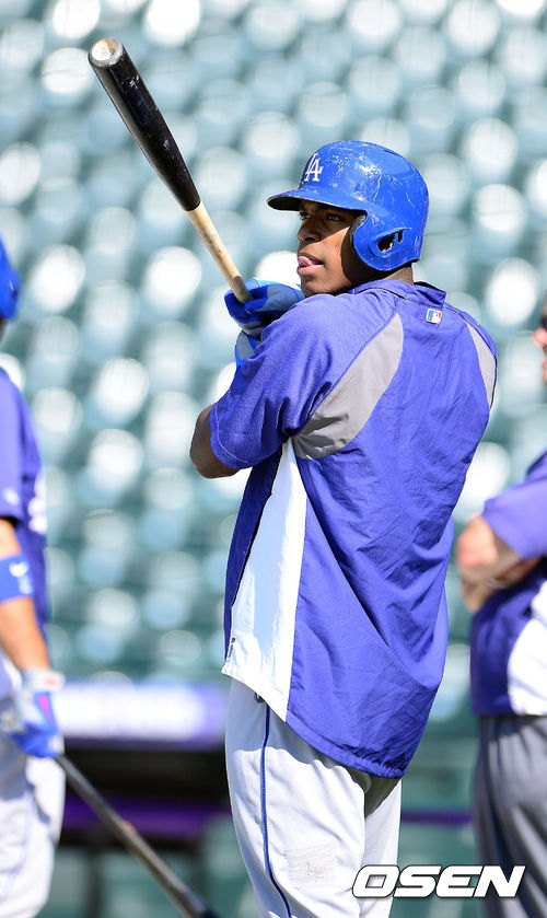 [OSEN=덴버(미국), 곽영래 기자] 4일(한국시간) 미국 콜로라도주 덴버 쿠어스필드에서 열린 2013 미국 메이저리그 콜로라도 로키스와 LA 다저스의 경기에 앞서 다저스 푸이그가 방망이를 들고 먼곳을 응시하고 있다.