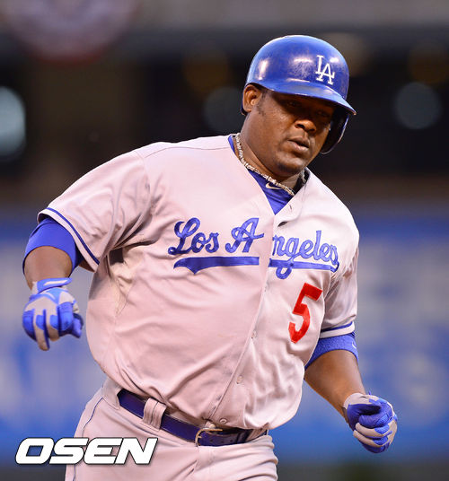 [OSEN=덴버(미국), 곽영래 기자] 4일(한국시간) 미국 콜로라도주 덴버 쿠어스필드에서 열린 2013 미국 메이저리그 콜로라도 로키스와 LA 다저스의 경기, 4회초 2사 1루 다저스 우리베가 동점 2점 홈런을 날리고 환호하고 있다.