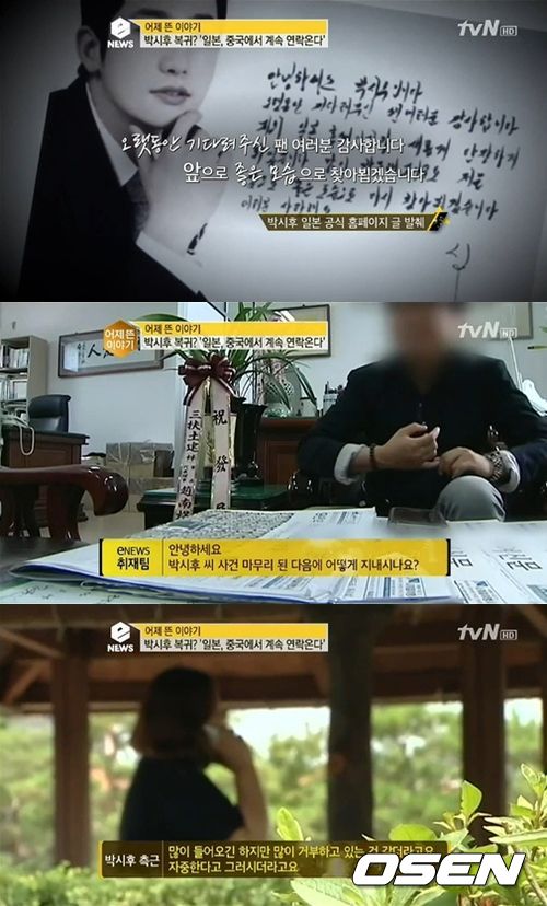 4일 오전 방송된 케이블채널 tvN 'E News-어제 뜬 이야기' 제작진은 박시후의 측근을 찾아가 근황과 복귀소식에 대해 들어 봤다.