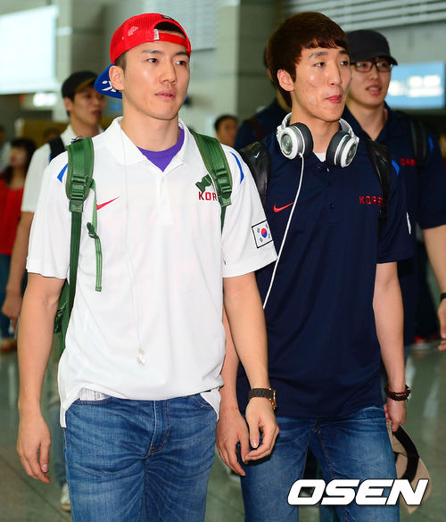 남자농구대표팀 박찬희와 김민구가 출국장으로 이동하고 있다.