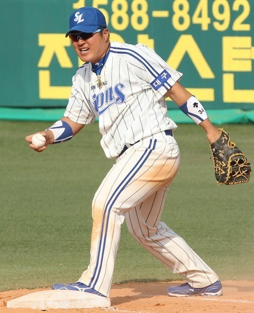 그는 "알바뛰는 기분"이라고 재치있게 표현했다. "못 하면 안 되지만 큰 부담을 가지지 않고 1루 수비에 나선다"는 게 그의 설명. 경기 도중 2루수 조동찬에게 이것저것 물어보다 핀잔을 듣기도. 류중일 감독은 4일 "올 시즌 1루수로 2차례 출장했는데 무난히 잘 소화했다"고 흡족한 반응을 보였다.
