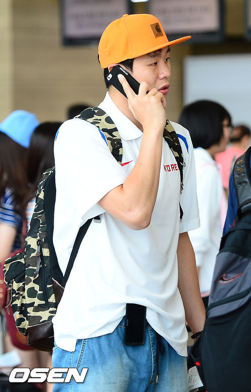 남자농구대표팀 조성민이 출국장으로 이동하며 전화를 하고 있다.