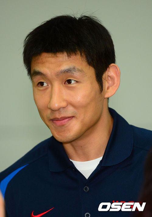 남자농구대표팀 양동근이 출국장 앞에서 인터뷰를 하고 있다.