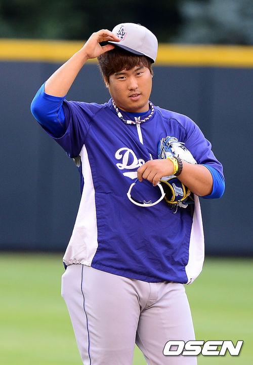 [OSEN=덴버(미국), 곽영래 기자] 6일(한국시간) 미국 콜로라도주 덴버 쿠어스필드에서 열린 2013 미국 메이저리그 콜로라도 로키스와 LA 다저스의 경기에 앞서 다저스 류현진이 모자를 고쳐 쓰고 있다