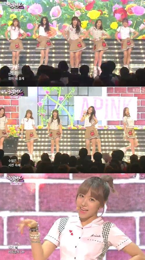 에이핑크는 5일 오후 방송된 KBS 2TV 음악 프로그램 '뮤직뱅크'(MC 정진운, 박세영)의 상반기 결산 특집에서 '노노노(No No No)'를 열창했다.