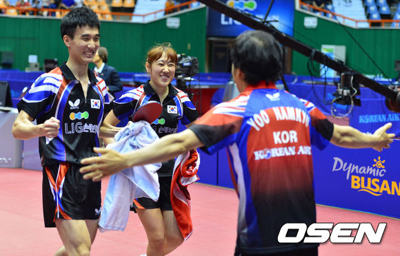 5일 오후 부산 사직실내체육관에서 열린 제 21회 아시아 탁구선수권대회 혼합복식 결승에서 대한민국 이상수(삼성생명)-박영숙(KRA한국마사회) 조가 일본의 니와 코키(세계19위)-히라노 사야카(세계32위) 조를 4-0으로 꺾고 우승을 차지했다.