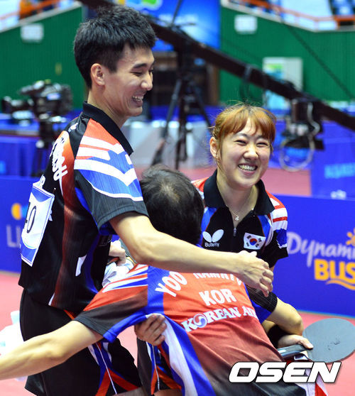 5일 오후 부산 사직실내체육관에서 열린 제 21회 아시아 탁구선수권대회 혼합복식 결승에서 대한민국 이상수(삼성생명)-박영숙(KRA한국마사회) 조가 일본의 니와 코키(세계19위)-히라노 사야카(세계32위) 조를 4-0으로 꺾고 우승을 차지했다.