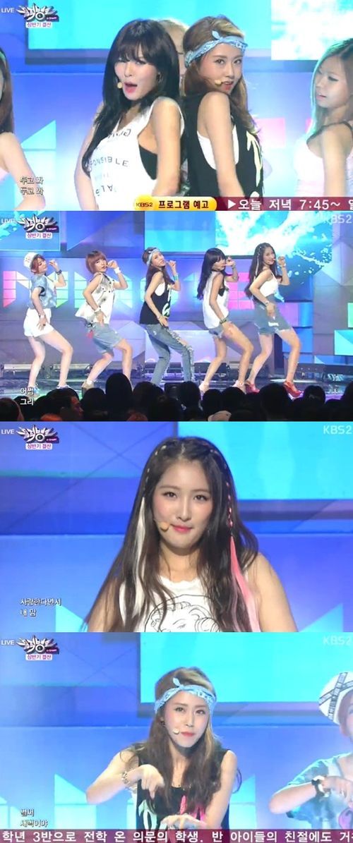 포미닛은 5일 오후 방송된 KBS 2TV 음악 프로그램 '뮤직뱅크'(MC 정진운, 박세영)의 상반기 결산 특집에서 '이름이 뭐예요'에 이어 '물좋아?'를 공개했다.