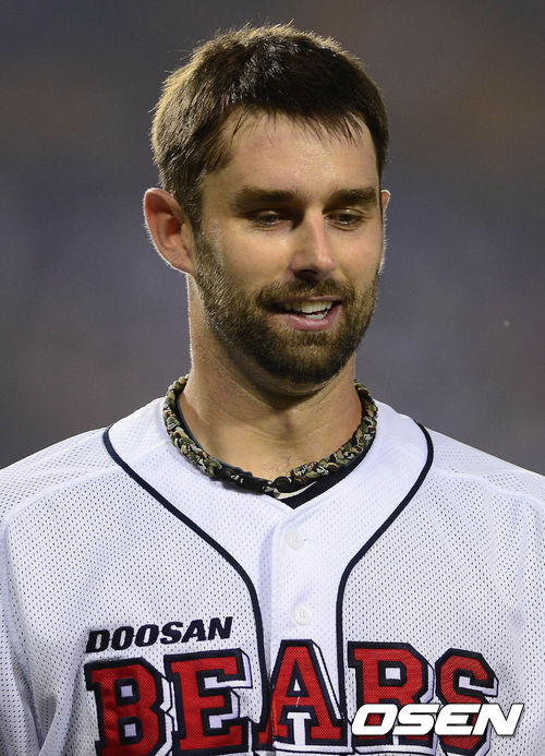 5일 오후 서울 잠실구장에서 열린 '2013 한국야쿠르트 세븐 프로야구' 두산 베어스와 삼성 라이온즈의 경기 5회초 종료 후 니퍼트가 덕아웃으로 향하며 미소를 짓고 있다.