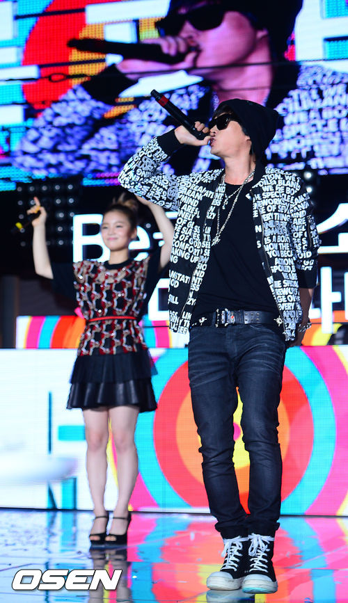 타블로와 이하이가 행사장에서 열창을 하고 있다.
