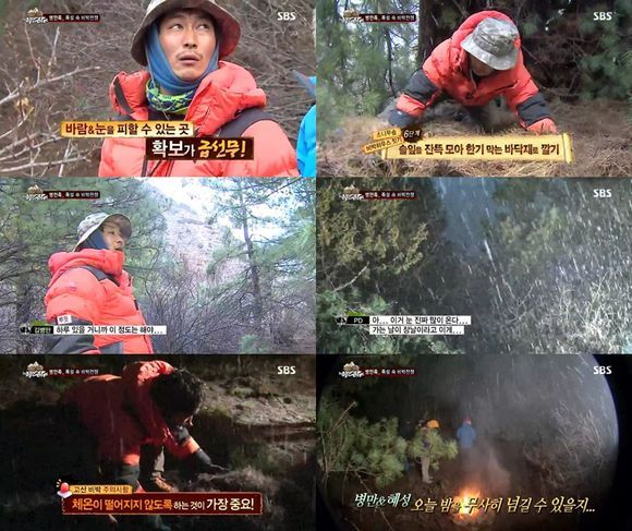 이후 하룻밤을 묵을 만한 장소를 찾은 김병만은 능숙한 솜씨로 나무가지들을 이어 임시방편으로 바람과 눈, 비를 막을 수 있는 집을 만들었다.