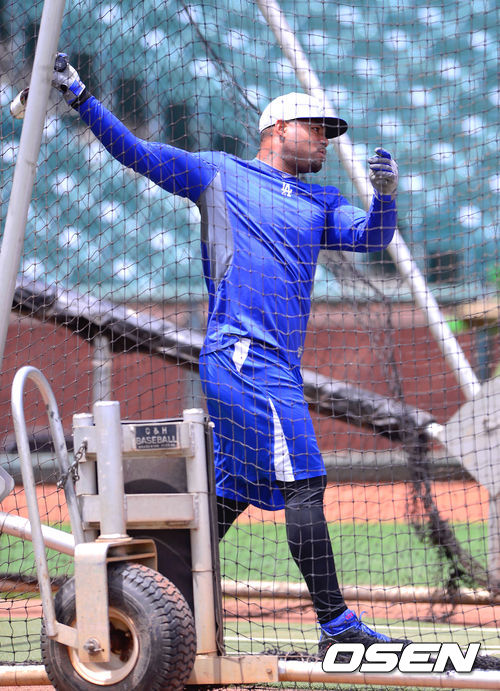 [OSEN=샌프란시스코, 곽영래 기자] 6일(한국시간) 미국 캘리포니아주 샌프란시스코에서 열린 2013 메이저리그 샌프란시스코 자이언츠와 LA 다저스의 경기 다저스 크로포드가 특타 훈련을 하고 있다