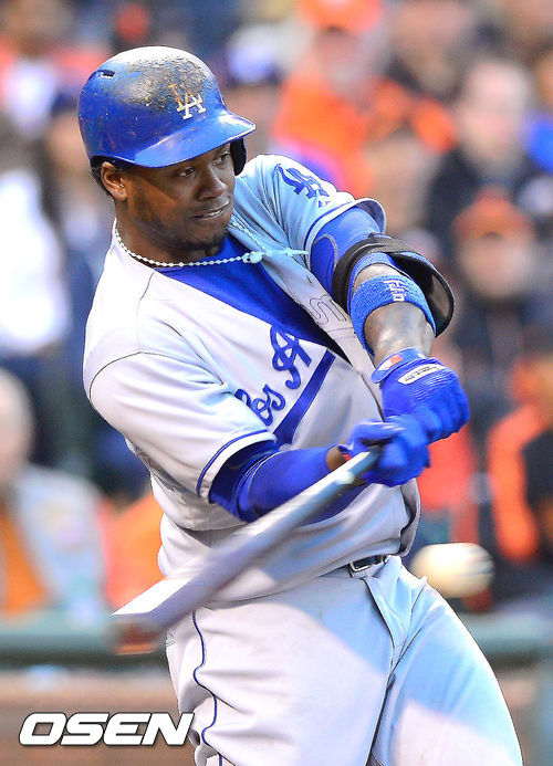 [OSEN=샌프란시스코, 곽영래 기자] 6일(한국시간) 미국 캘리포니아주 샌프란시스코에서 열린 2013 메이저리그 샌프란시스코 자이언츠와 LA 다저스의 경기, 3회초 무사 주자 1,2루 LA 다저스 라미레ㅡ가 중전 1타점 적시타를 날리고 있다.