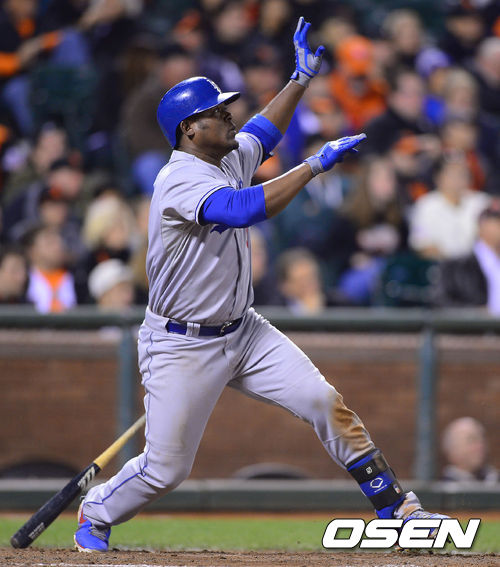 [OSEN=샌프란시스코, 곽영래 기자] 6일(한국시간) 미국 캘리포니아주 샌프란시스코에서 열린 2013 메이저리그 샌프란시스코 자이언츠와 LA 다저스의 경기, 7회초 무사 주자 1루 LA 다서스 후안 유리베가 좌중월 투런 홈런을 날리고 있다.