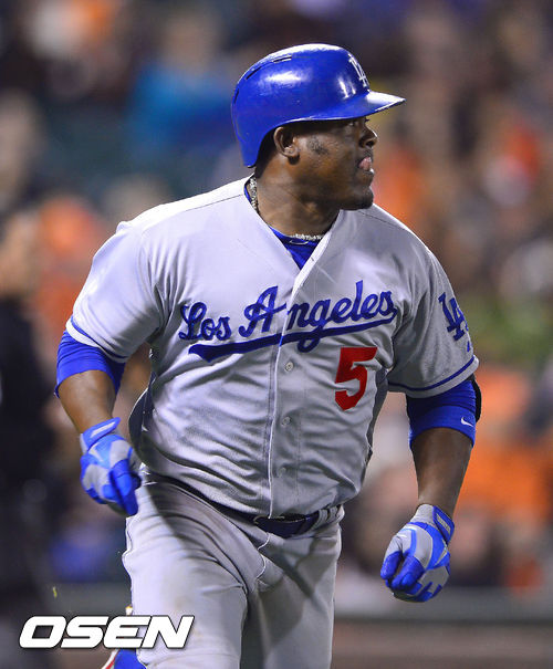 [OSEN=샌프란시스코, 곽영래 기자] 6일(한국시간) 미국 캘리포니아주 샌프란시스코에서 열린 2013 메이저리그 샌프란시스코 자이언츠와 LA 다저스의 경기, 7회초 무사 주자 1루 LA 다서스 후안 유리베가 좌중월 투런 홈런을 날리고 있다.