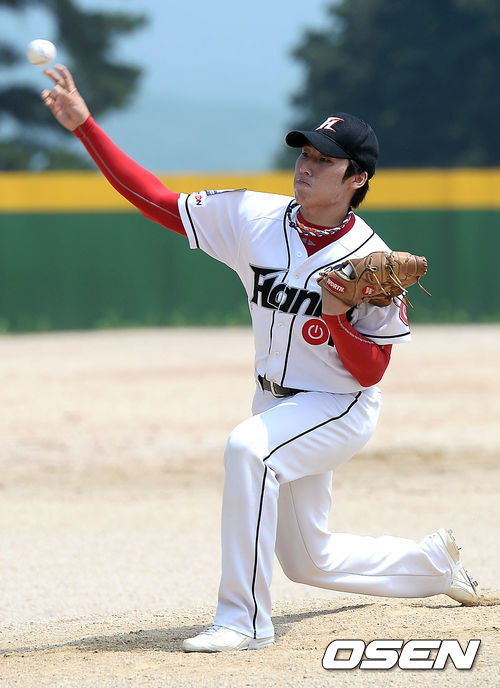 6일 오후 경기도 김포시 송일야구장에서 열린 '제4회 니베아 맨 컵 전국생활체육 야구대회' 32강 한빛소프트와 GMB의 경기, 1회초 한빛소프트 정광훈이 역투하고 있다.