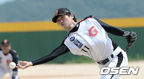6일 오후 경기도 김포시 송일야구장에서 열린 '제4회 니베아 맨 컵 전국생활체육 야구대회' 32강 한빛소프트와 GMB의 경기, 1회말 GMB 선발 이은호가 역투하고 있다.