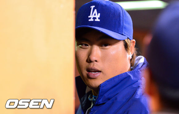 7회말 2사 2루 다저스 류현진이 더그아웃을 빠져나가며 사진기자에게 이야기하고 있다. / soul1014@osen.co.kr