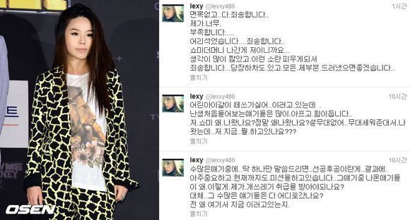 렉시는 5일 밤 '쇼미더머니2'가 전파를 탄 이후 6일 새벽 자신의 트위터에 프로그램의 편집에 대한 불만이 담긴 글을 게재해 네티즌의 관심을 불러일으킨 바 있다.