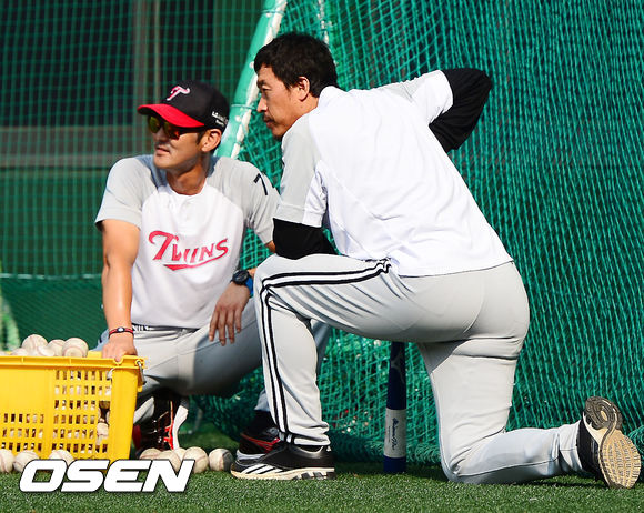6일 오후 목동구장에서 2013 한국야쿠르트 세븐프로야구 넥센 히어로즈와 LG 트윈스의 경기가 열릴 예정인 가운데, 훈련시간에 LG 이병규가 타격연습을 마치고 포즈를 취하고 있다.