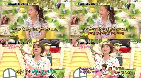 안리원 양은 6일 오후 방송된 SBS '스타 주니어쇼 붕어빵(이하 '붕어빵')'에서 "엄마가 화장을 떡칠한다"라고 밝혔다.