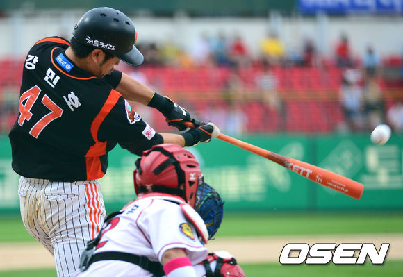 6일 오후 광주 무등경기장에서 '2013 한국야쿠르트 세븐 프로야구' KIA 타이거즈와 롯데 자이언츠의 경기가 열렸다. 1회초 롯데 공격 무사 1, 3루 상황 4번타자 강민호가 KIA 선발 윤석민을 상대로 중월 3점포를 날리고 있다.