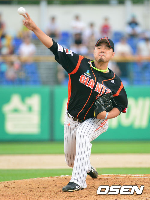 6일 오후 광주 무등경기장에서 '2013 한국야쿠르트 세븐 프로야구' KIA 타이거즈와 롯데 자이언츠의 경기가 열렸다. 1회말 KIA 공격 롯데 선발 송승준이 힘차게 공을 던지고 있다.