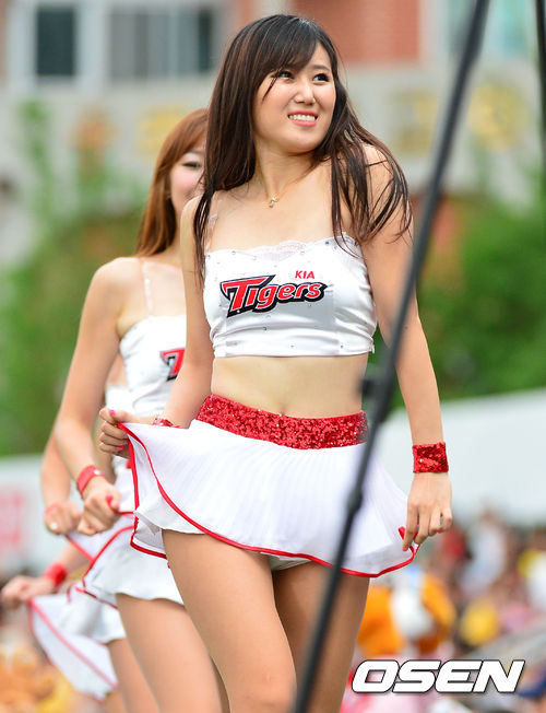 6일 오후 광주 무등경기장에서 '2013 한국야쿠르트 세븐 프로야구' KIA 타이거즈와 롯데 자이언츠의 경기가 열렸다. KIA 치어리더가 멋진 공연을 선보이고 있다.