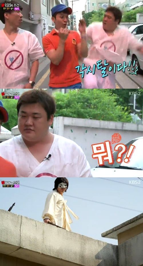 6일 방송된 KBS 2TV 예능 프로그램 '인간의 조건'(박성호 김준호 정태호 양상국 김준현 허경환)에서는 전기 없이 사는 미션을 받은 멤버들의 모습이 그려졌다.